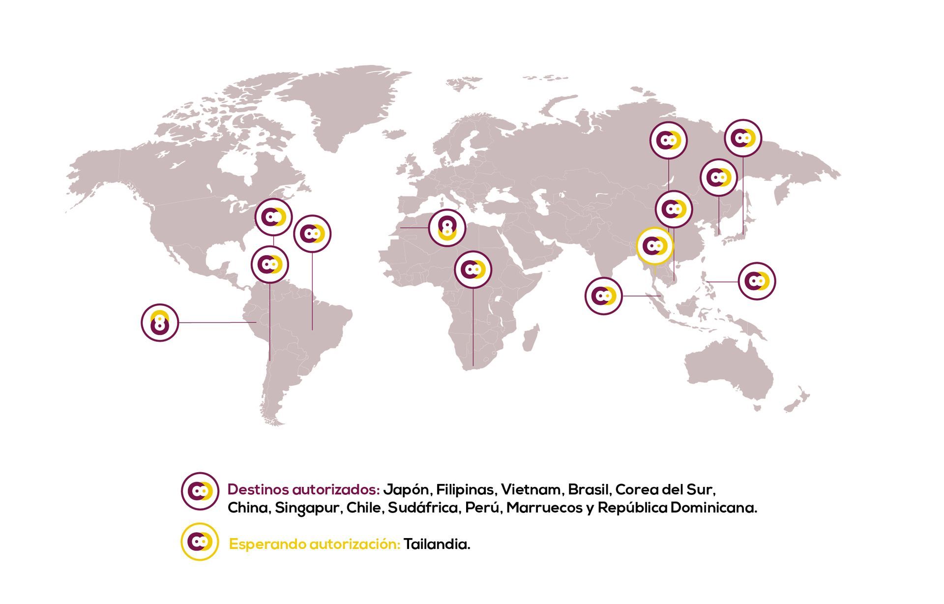 Actualmente, Hola Food cuenta con autorización para exportar a Corea del Sur, China, Filipinas, Japón, Vietnam, Sudáfrica, Brasil, Chile, Singapur y Perú, a los que se suman ahora Marruecos y la República Dominicana.